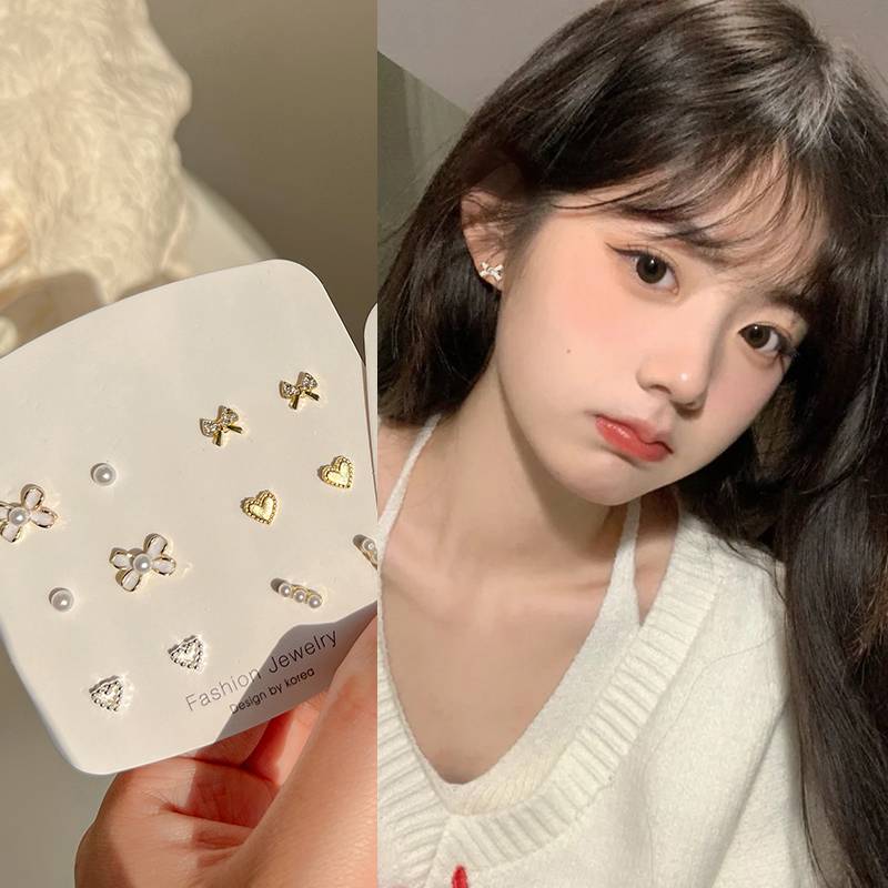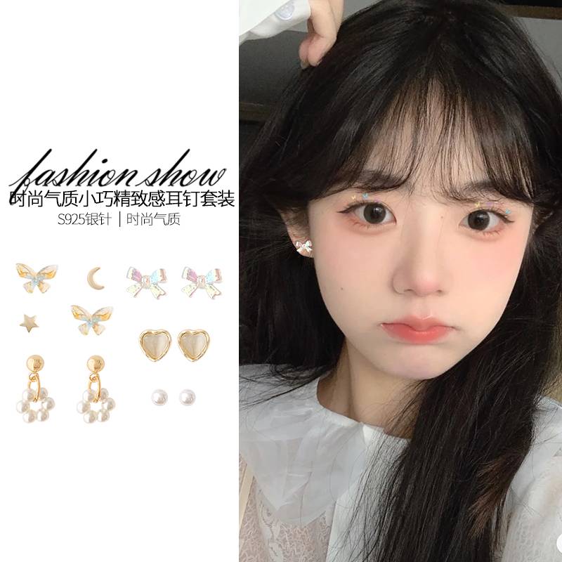 精致气质耳环套装女蝴蝶结2022年新款潮设计感耳钉纯银高级感耳饰