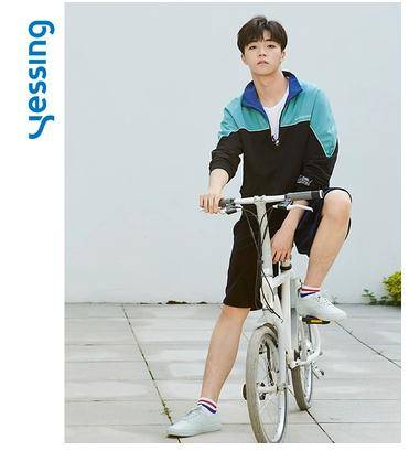 陈立农同款卫衣Yessing男士元气印花织带插肩连帽卫衣外套