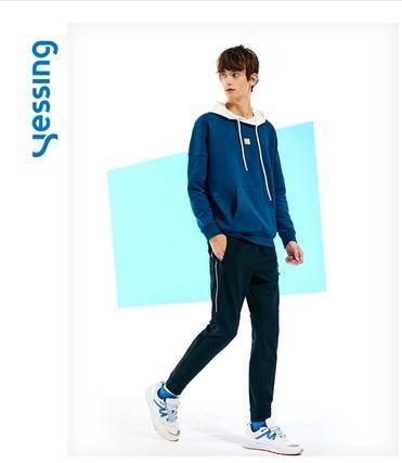 陈立农同款Yessing男士撞色加绒连帽卫衣2018流行新款套头帽衫