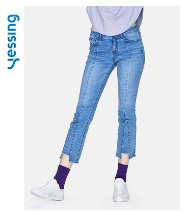 轻运动服饰2018秋季女士牛仔裤毛边微喇叭裤新款显瘦长裤