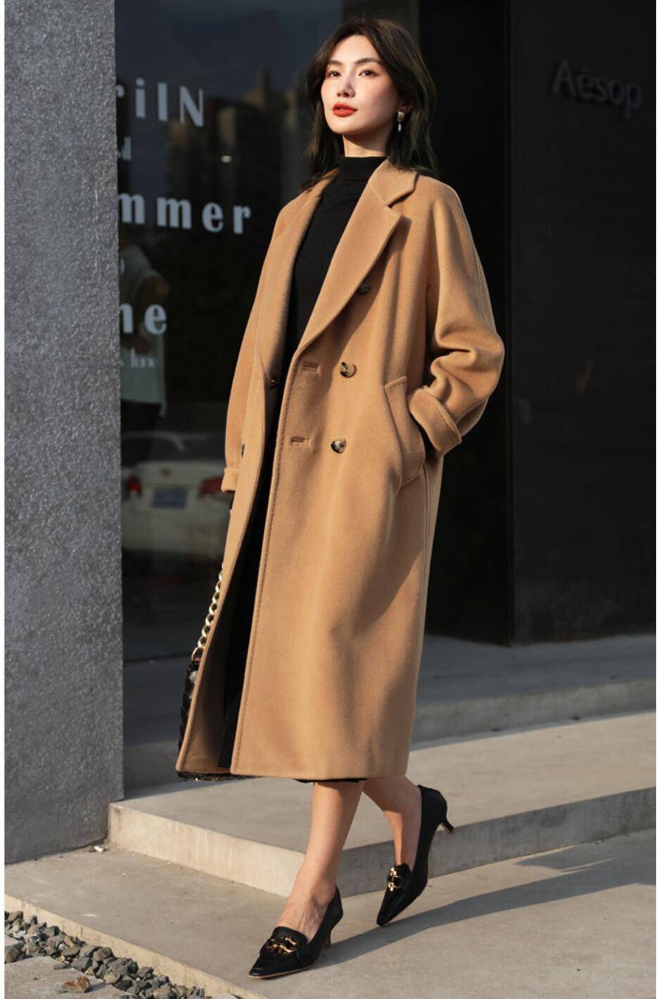 2020年新款双面羊绒大衣女中长款阿尔巴卡宽松毛呢高端加厚外套冬