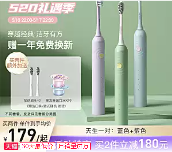 自动牙刷一年免费换新高强力清洁。