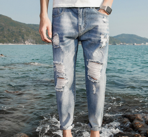 夏季新款九分裤牛仔裤男士韩版潮流修身小脚裤 100.00 已售:0件