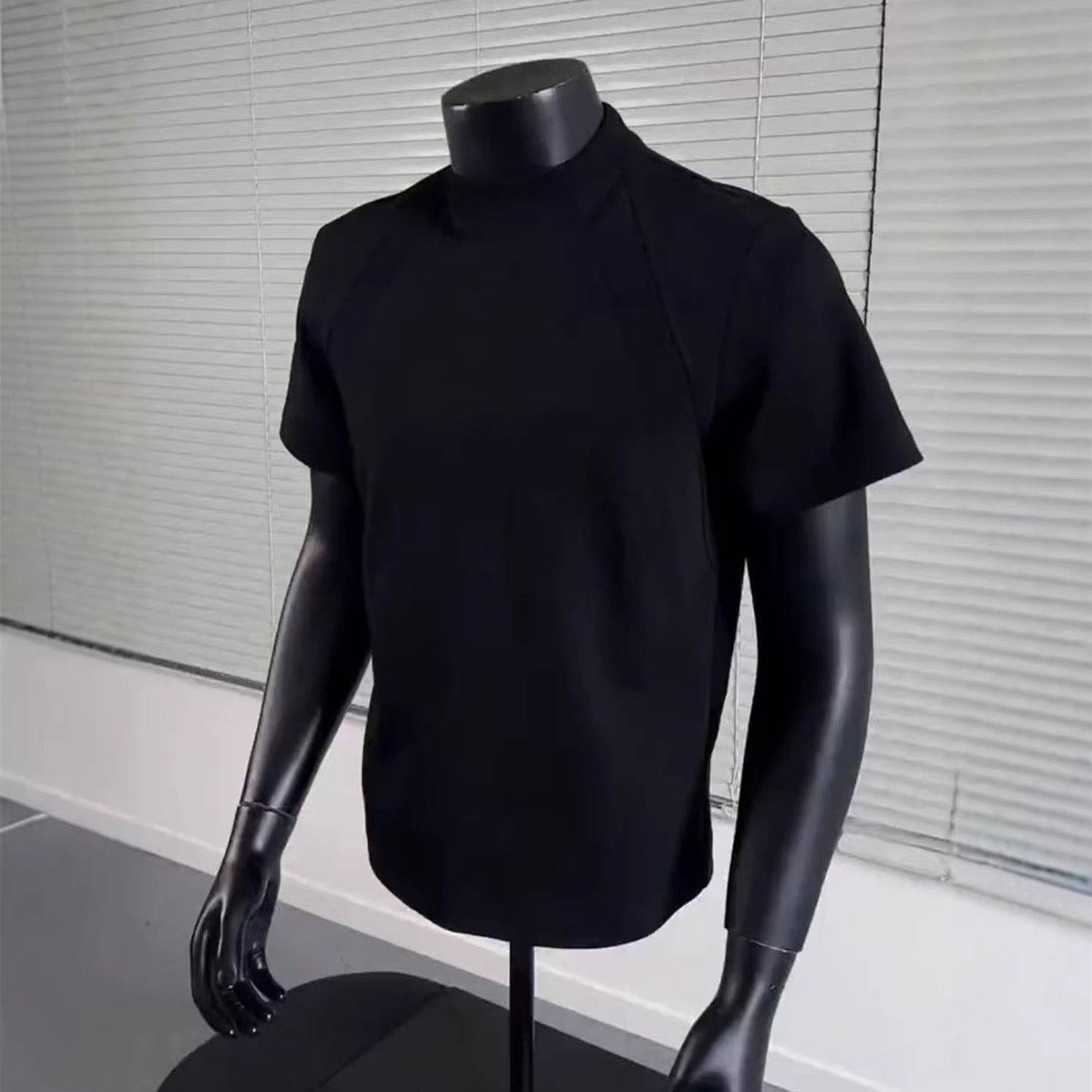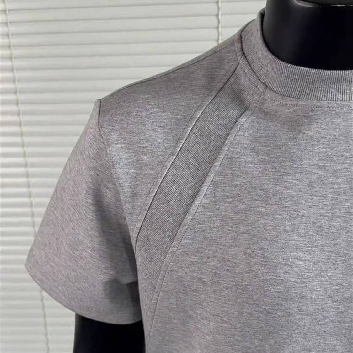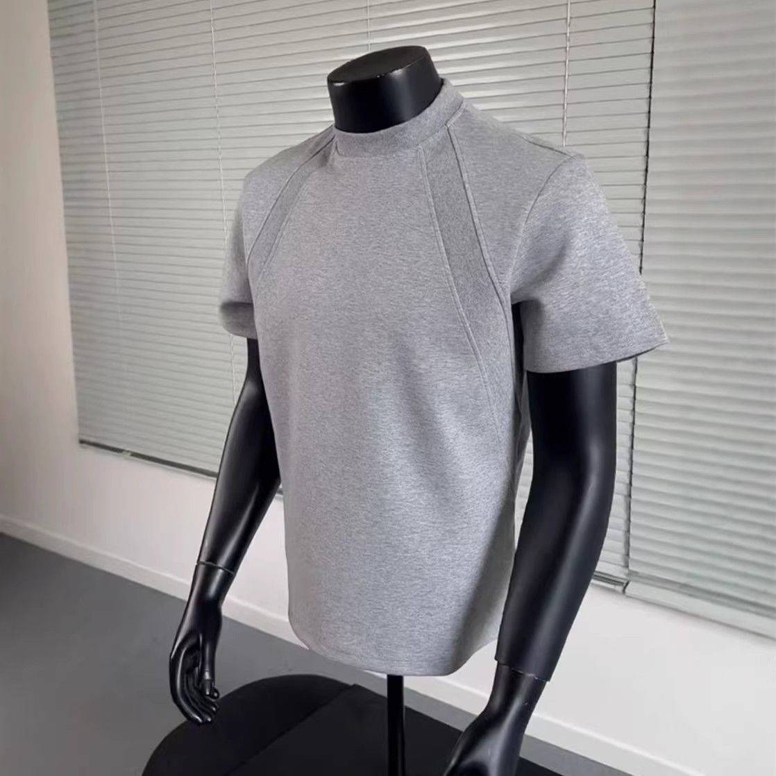 夏季新款重磅正肩T恤空气层太空棉拼接美式硬挺短袖男boxy版型潮