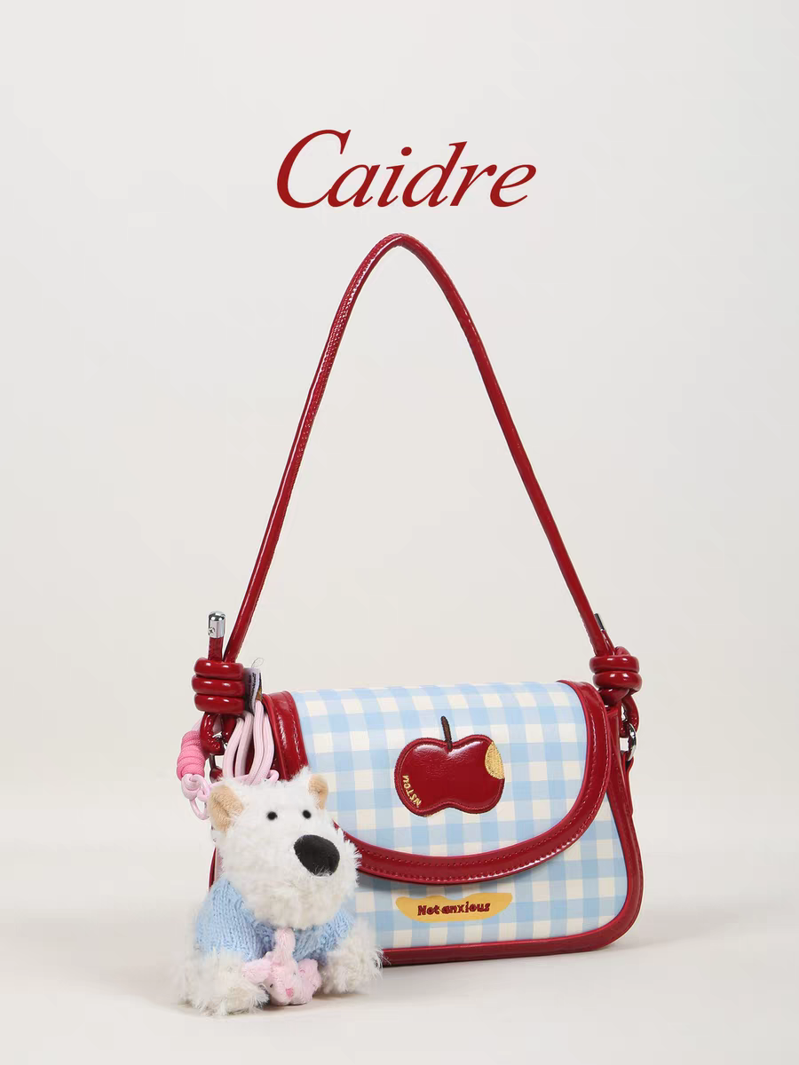 可爱小狗学院风斜挎包包少女格子苹果单肩腋下包马鞍包 35.90 已售:0件