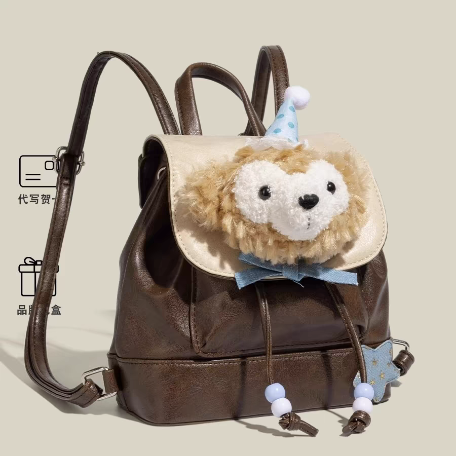撞色双肩包女2025新款春季可爱达菲熊毛绒小背包 45.90 已售:4件
