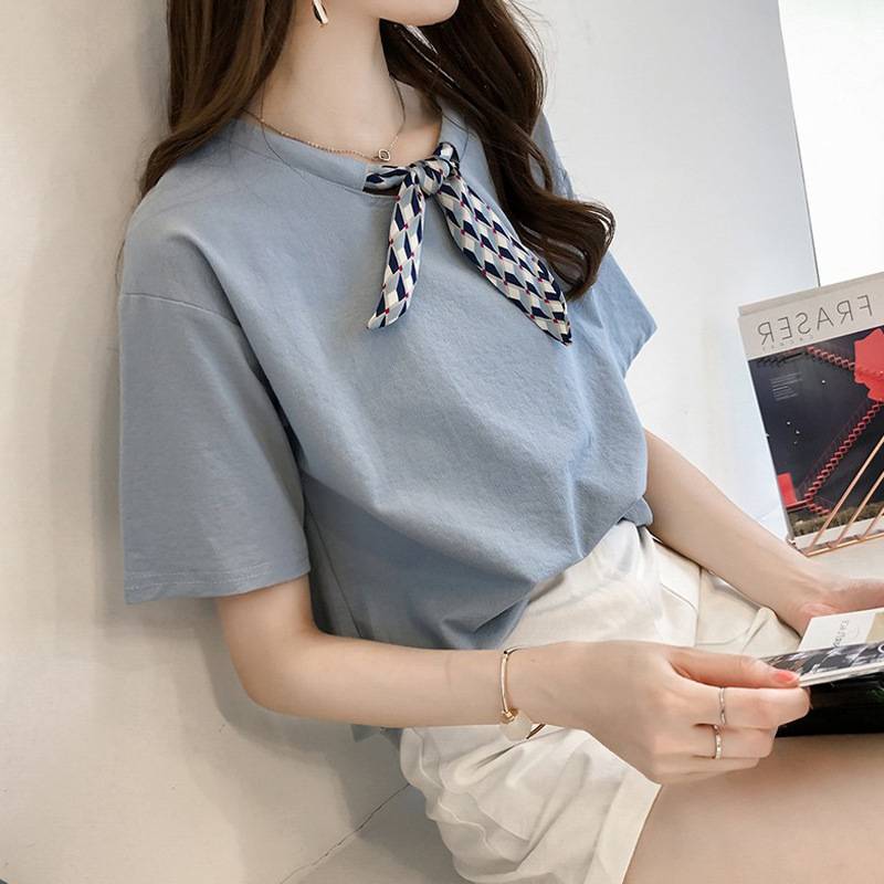 夏装新款上衣雪纺衬衫白色衬衣时尚洋气半袖t恤宽松超仙蝴蝶结