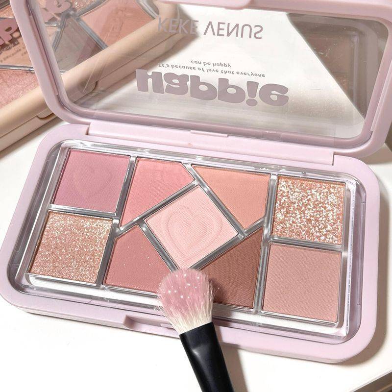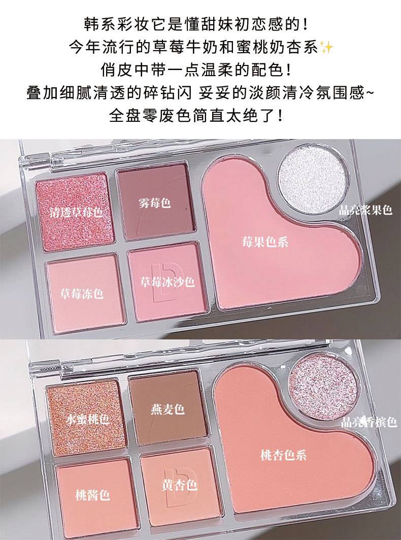 爱心眼影盘腮红高光一体盘焦糖粉棕大地色哑光珠光学生爆款平价女