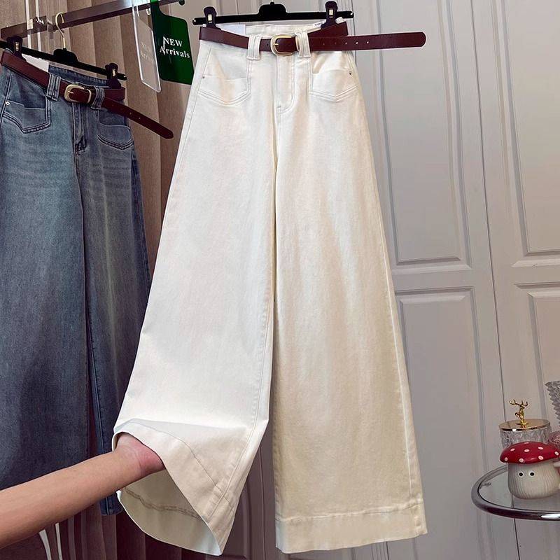 2025春季米白色腰阔牛仔裤新款直筒mm显瘦宽松垂感拖地喇叭