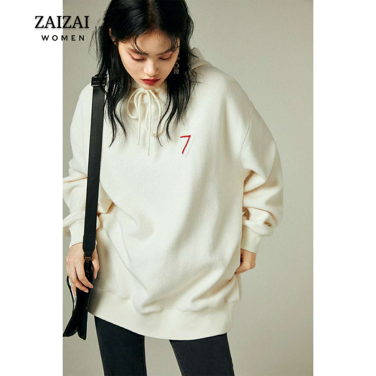 ZAIZAI韩版宽松连帽卫衣2020春秋毛茸茸卫衣