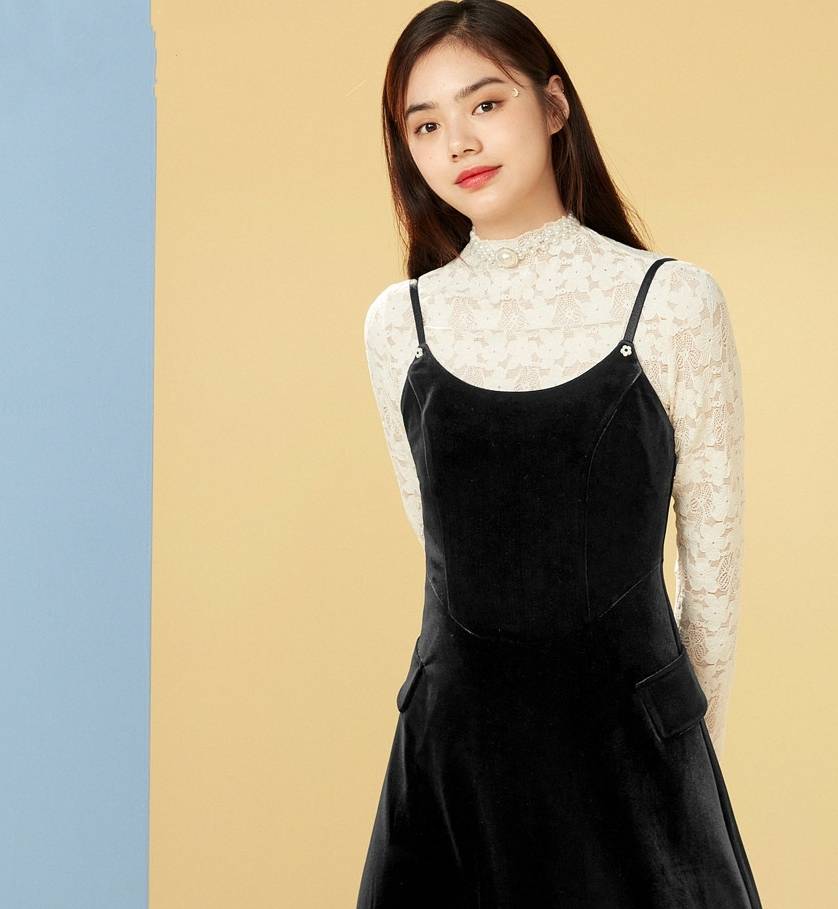 ZAIZAI黑色丝绒吊带连衣裙女2020秋冬新款收腰内搭法式复古短裙女