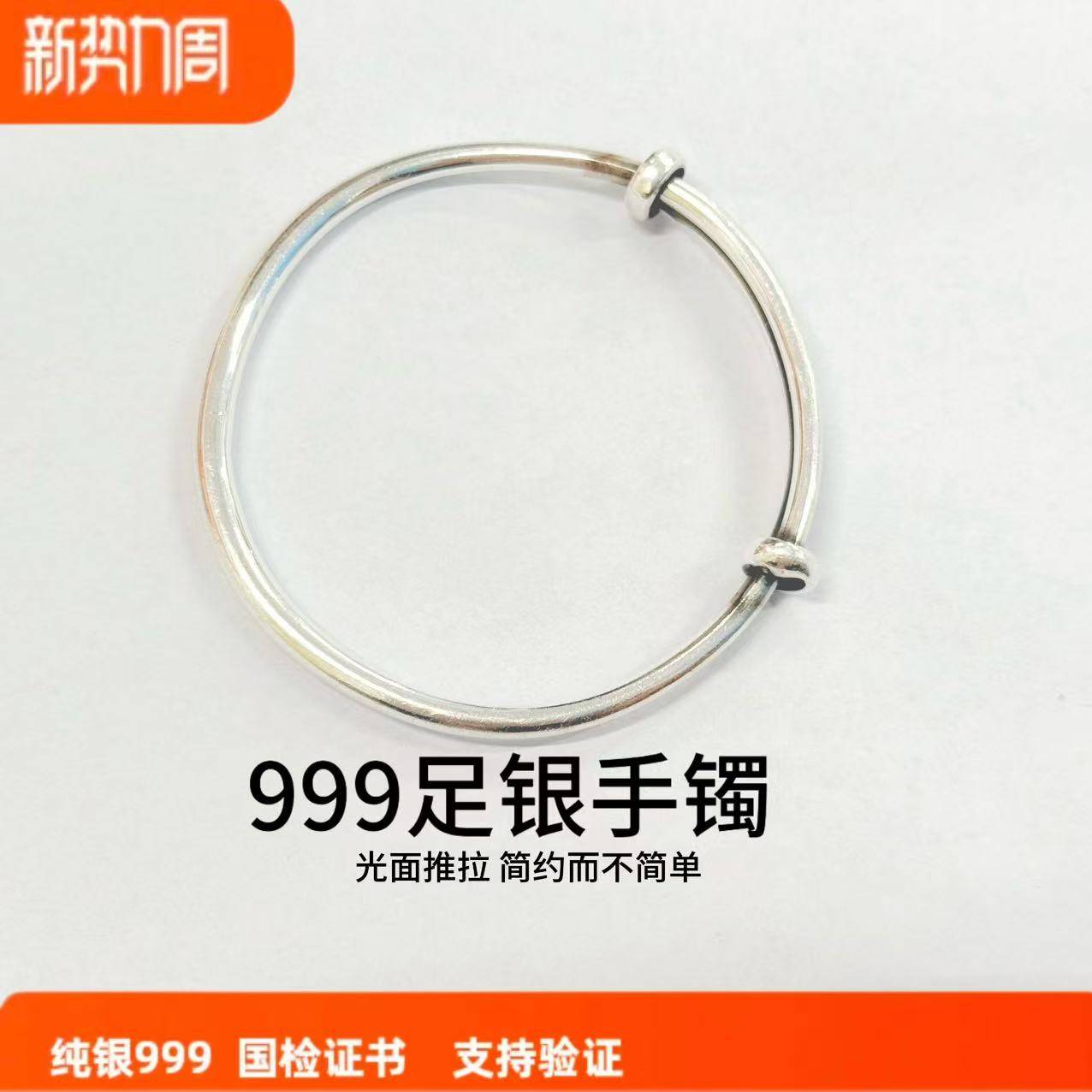 遇见三生三世银手镯女S999足银抖音直播文字线纯银竹节款镯子
