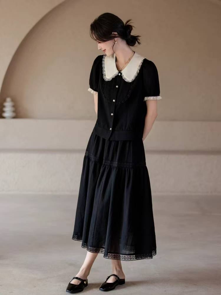 微胖女装亚麻两件套连衣裙夏款宽松显瘦胖mm大码绝美套装黑色裙子
