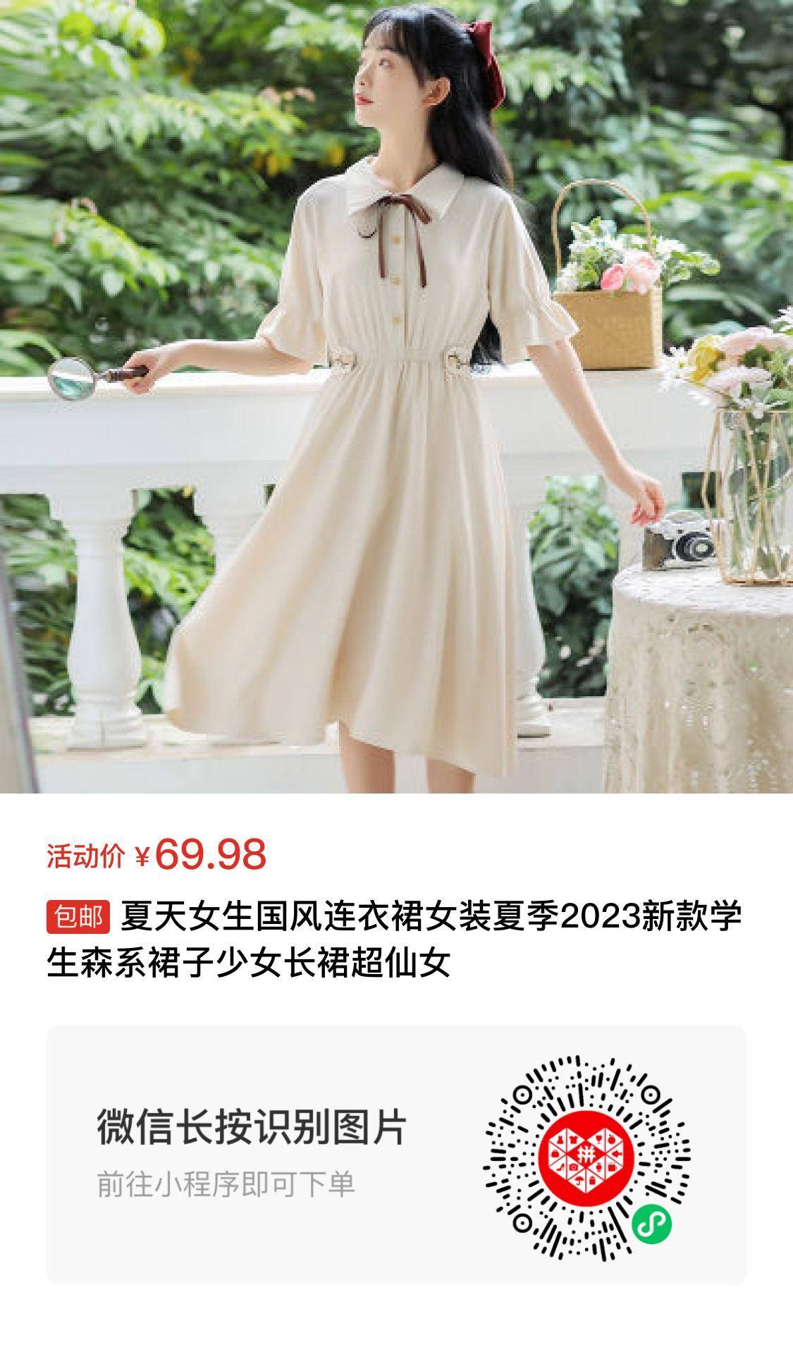 夏天女生国风连衣裙女装夏季2023新款学生森系裙子少女长裙超仙女 参考价:288 抢购价:69.98 商品链接:http