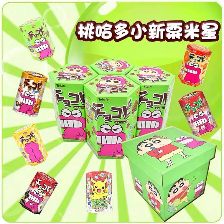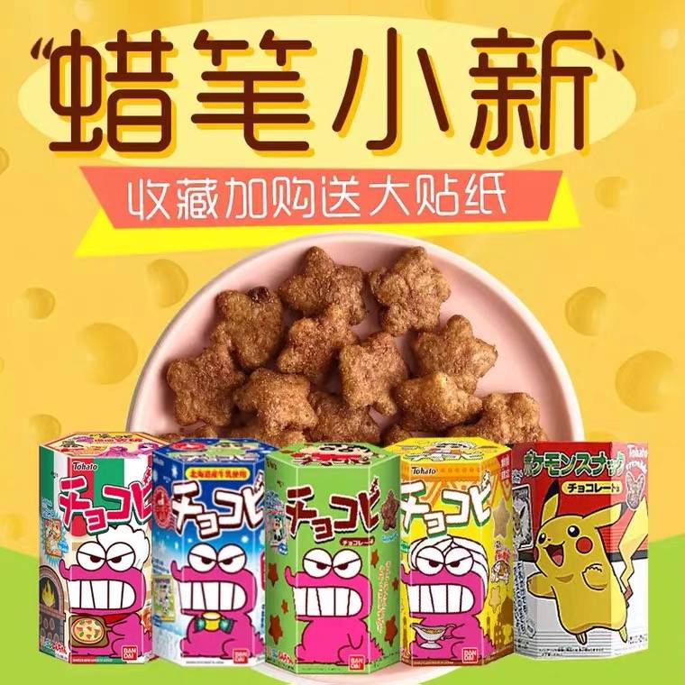 包邮日本进口零食桃哈多Tohato粟米星蜡笔小新巧克力