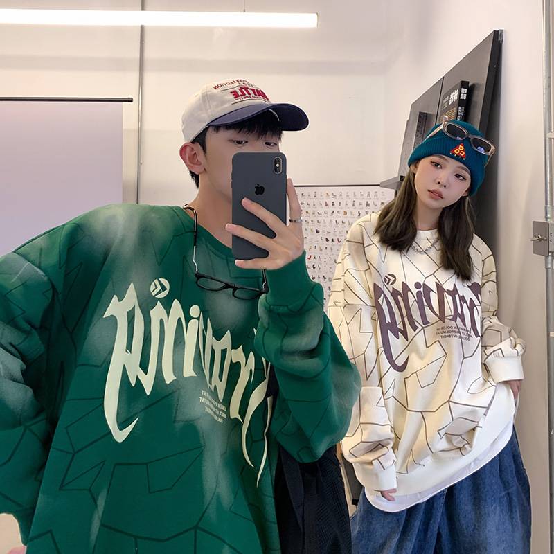 潮牌卫衣男宽松国潮无帽套头港风春秋上衣女圆领百搭日系情侣装