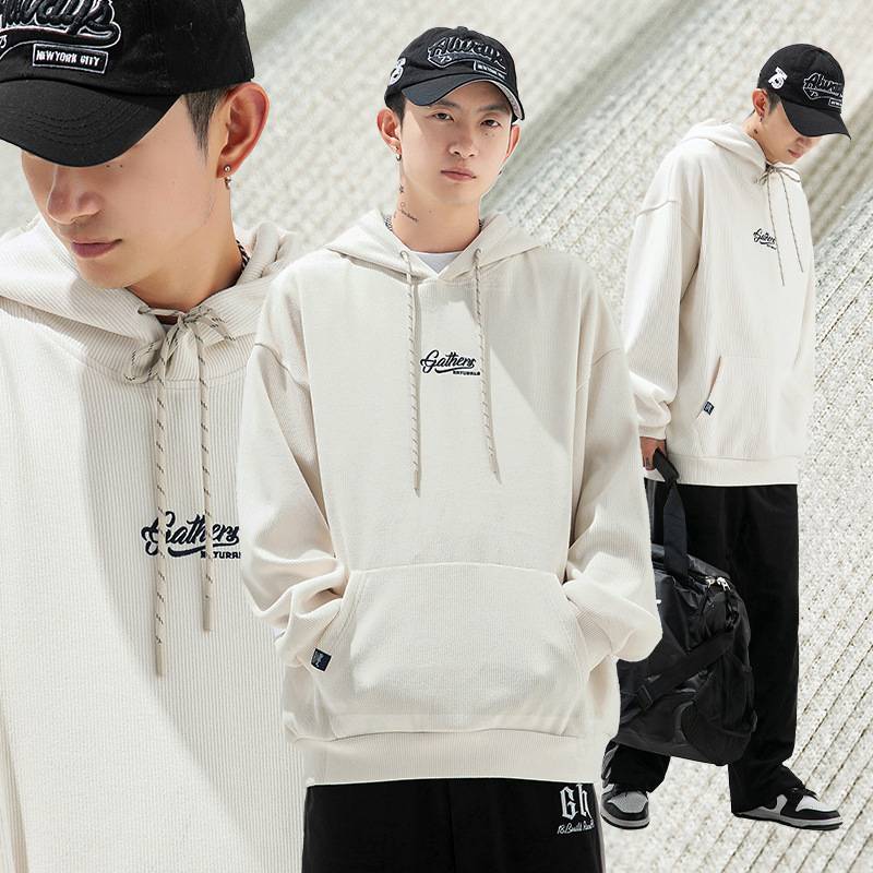 韩路日系男装 美式刺绣连帽卫衣男2022秋季新款宽松日系情侣外套