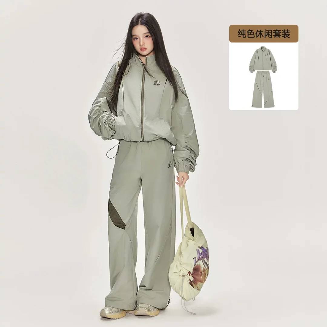 运动风套装女2024秋季立领宽松休闲外套高腰运动长裤两件套
