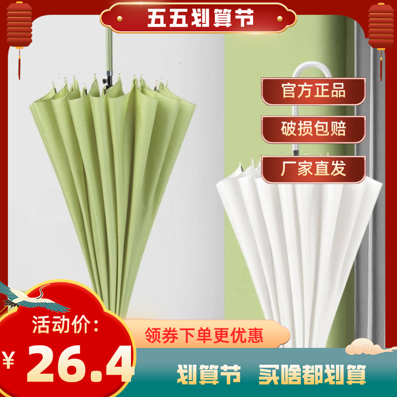 16骨日系小清新弯柄伞晴雨两用纯色复古创意广告礼品长柄雨伞