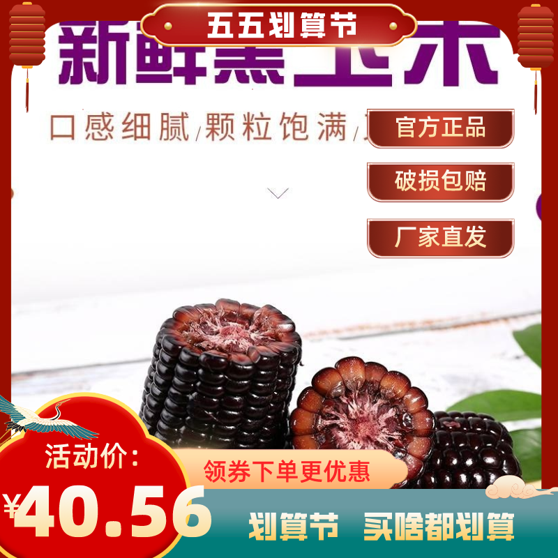 东北黑糯玉米12根包邮新鲜紫黏玉米双棒装即食甜嫩苞米粒真空蔬菜