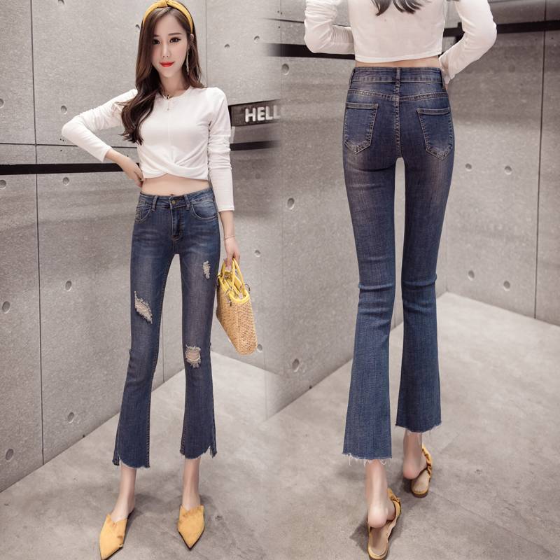夏修身显瘦微喇牛仔裤2018新款春秋时尚韩版九分裤潮