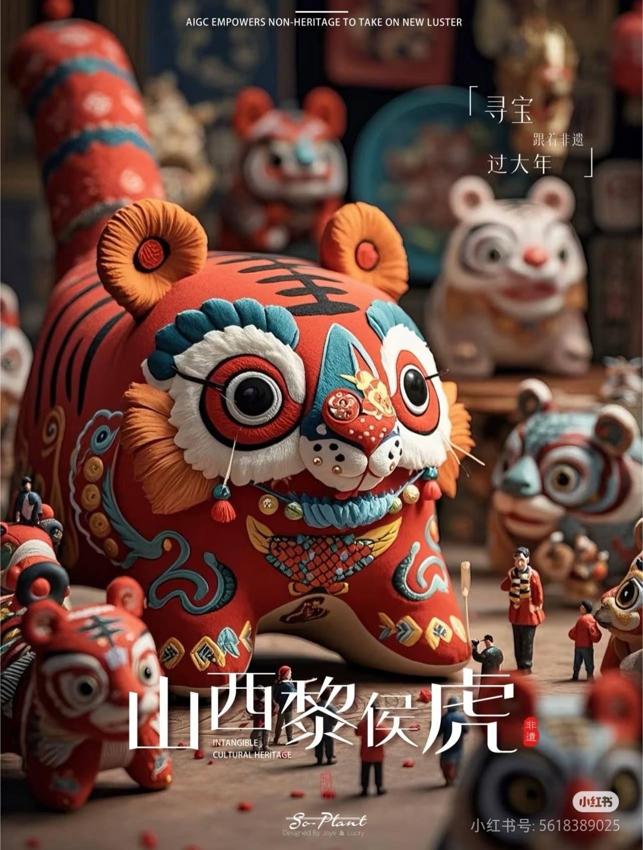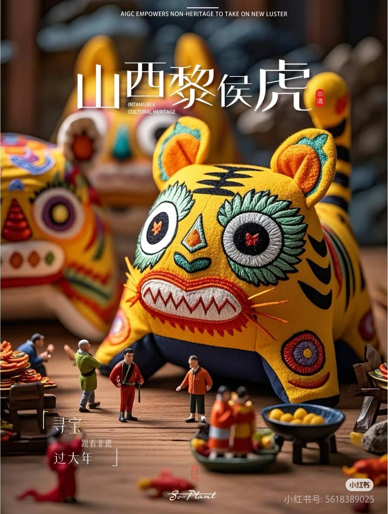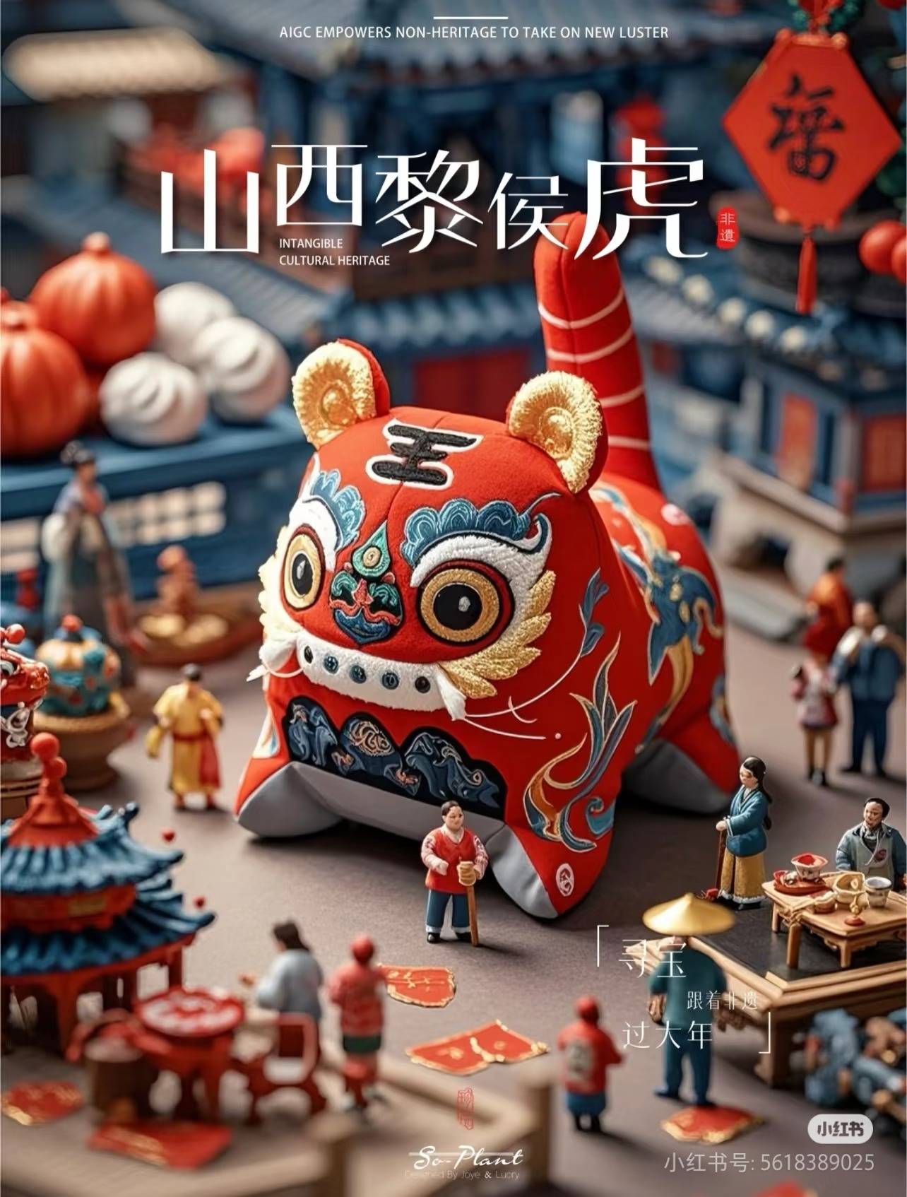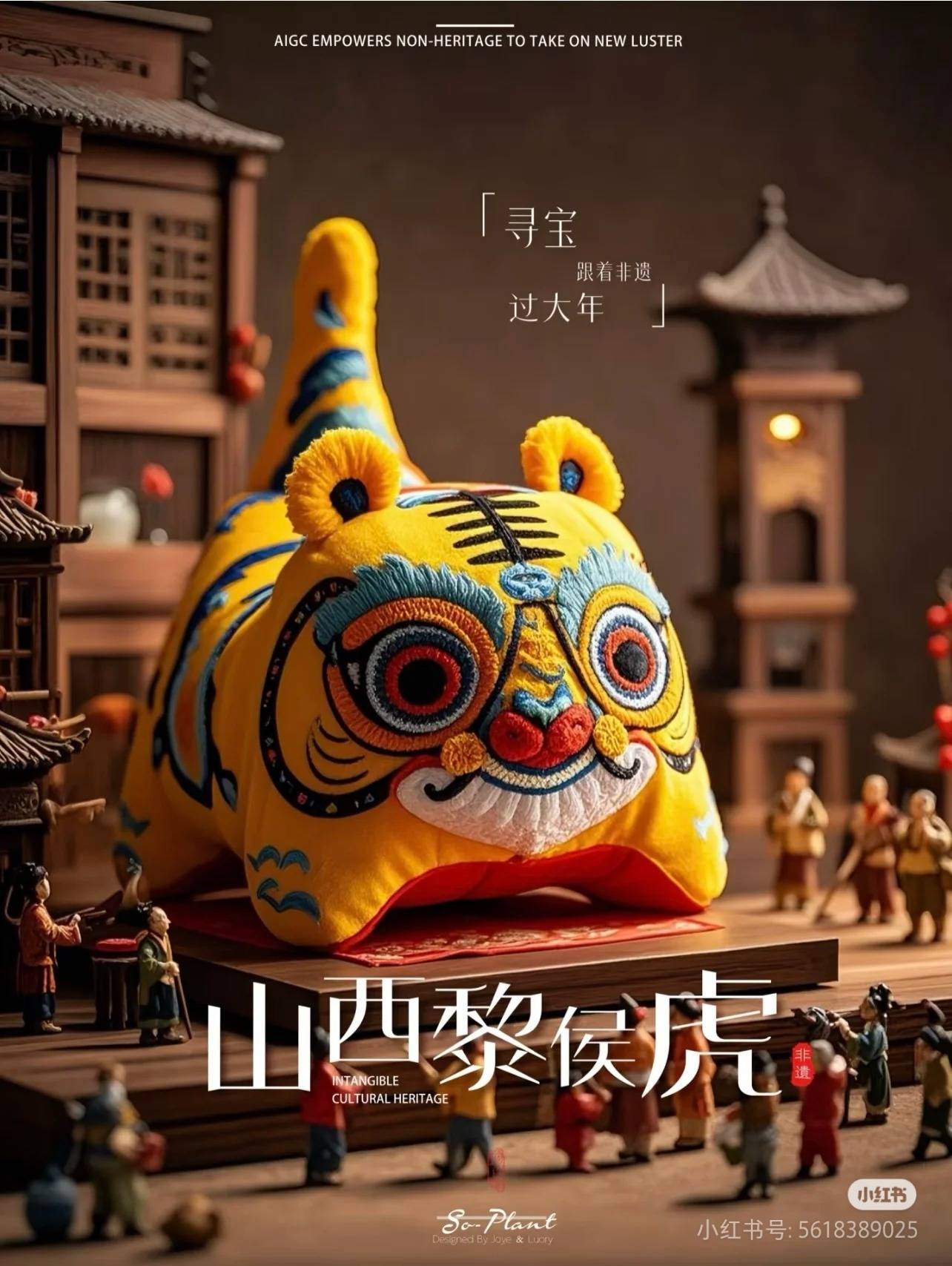“中华第一虎,古国三千年”。 黎侯虎是流行于山西省黎城县黎侯镇、停河铺乡一带的民间老虎布艺,因黎城古称“黎侯”而得名,寄托了民众扶正祛邪、万事如意的美好祈愿。黎侯虎的起源可以追溯到商周时期,距今已有3000 年历史。