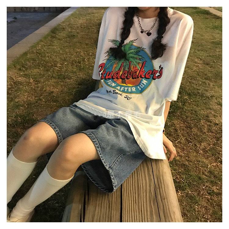 阔腿牛仔短裤女夏季新款ins复古高腰宽松显瘦学生直筒五分裤中裤