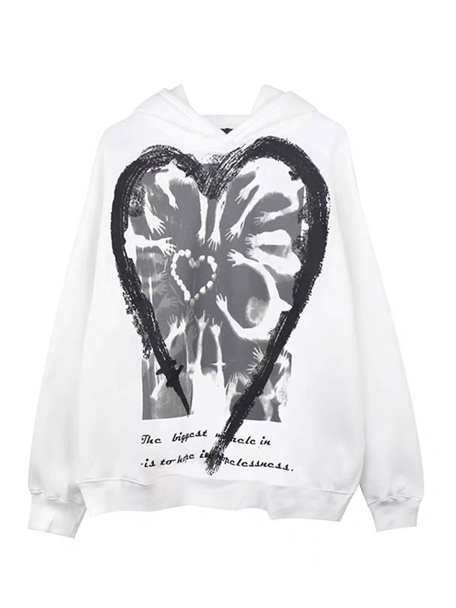 秋冬黑色小众爱心加绒连帽卫衣女街头嘻哈风宽松上衣 199.00 已售:0件