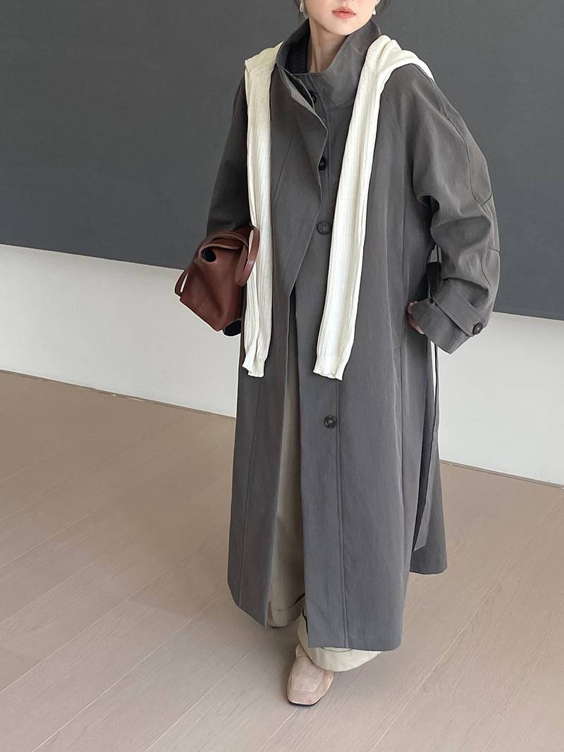 那末 高定系列 经典立领廓版收腰风衣女早秋翻领中长款外套2127