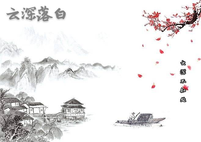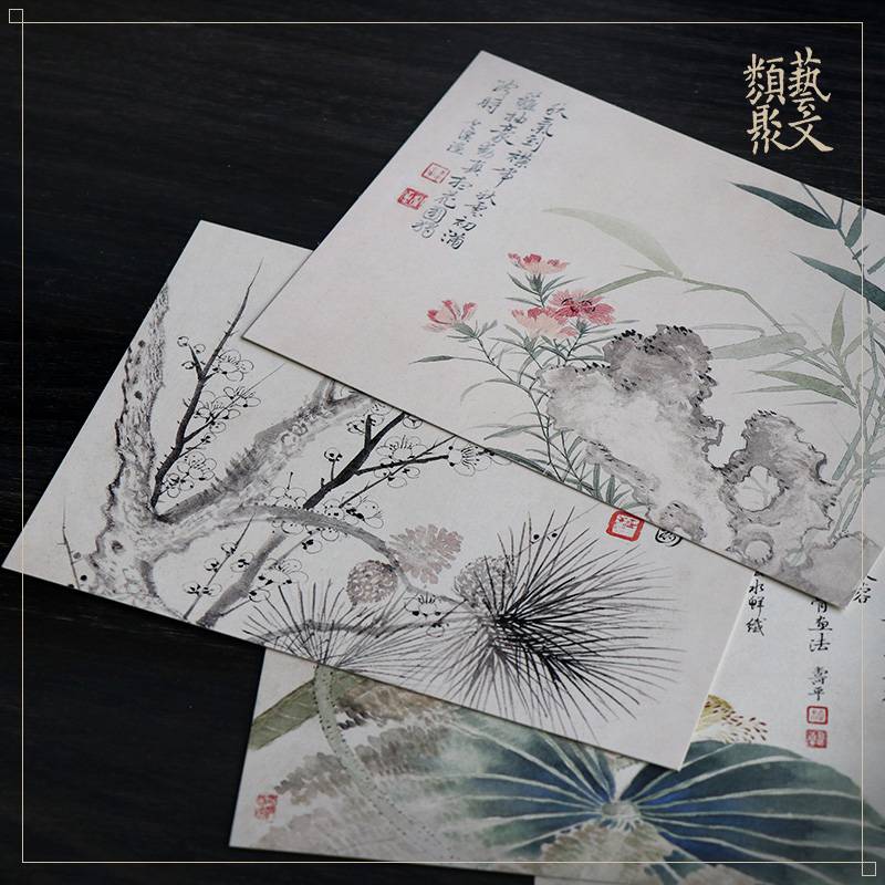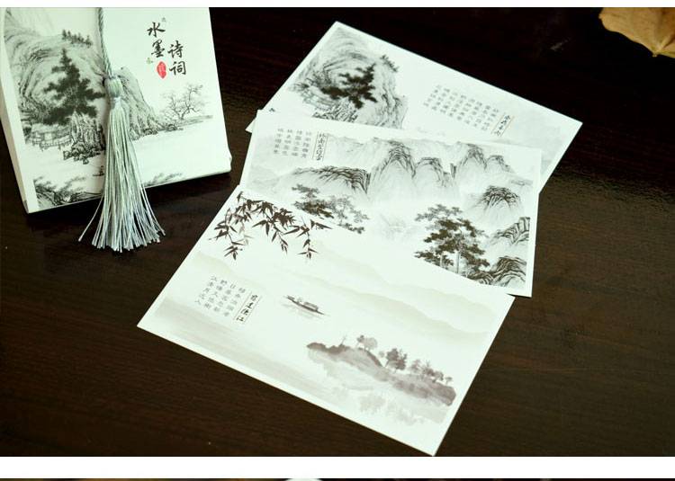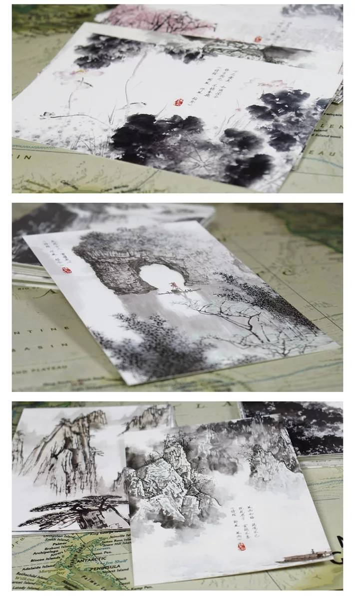 水墨风诗经明信片手绘山水国画古风中国风出国礼品创意礼物名信片
