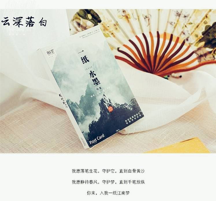 白古风水墨文艺复古可邮寄明信片 毕业季大促销