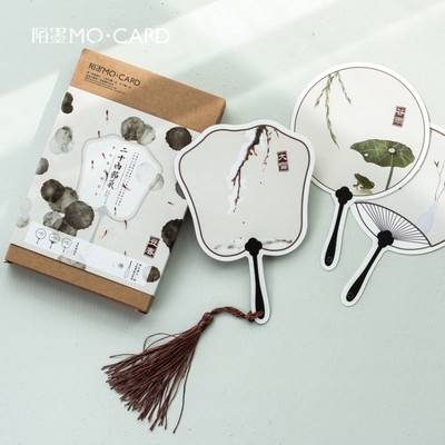 异形手绘明信片古风二十四节气扇形送流苏一枚贺卡卡片牛皮纸盒装