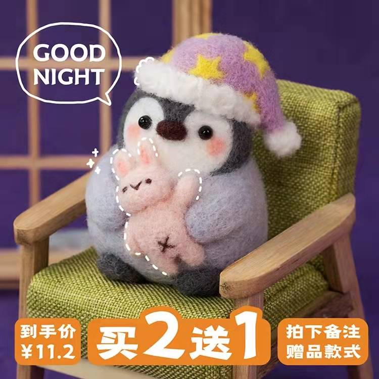 羊毛毡戳戳乐diy材料包创意手工制作物摆饰挂饰饭团小企鹅