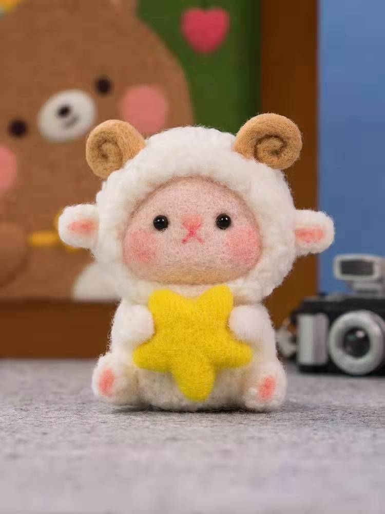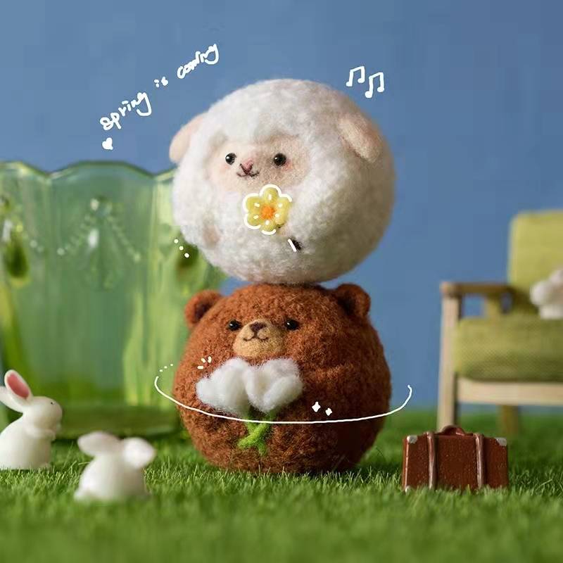 羊毛毡戳戳乐diy材料包创意手工制作物摆饰挂饰小熊小羊