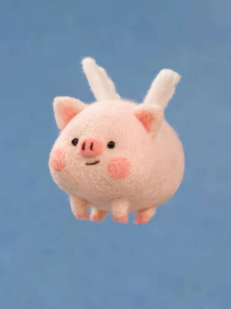 羊毛毡戳戳乐diy材料包创意手工制作物摆饰挂饰飞天小猪