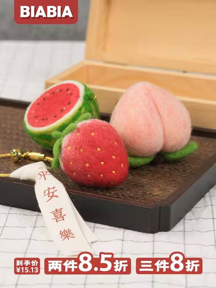 羊毛毡戳戳乐diy材料包创意手工桃子草莓西瓜水果钥匙扣