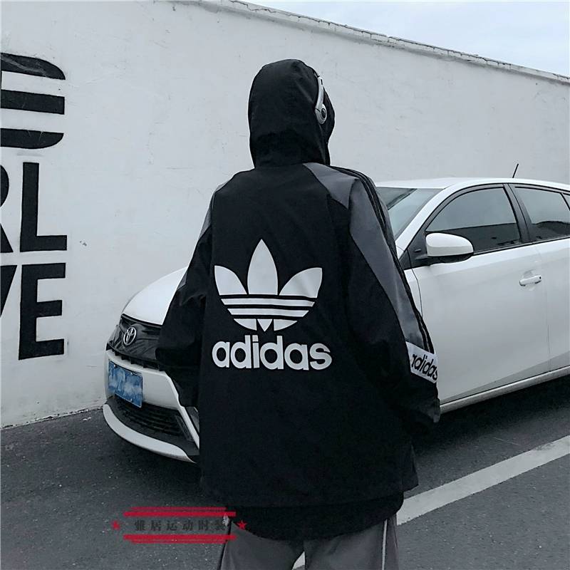 阿迪达斯冲锋衣外套潮流三叶草连帽夹克风情侣装