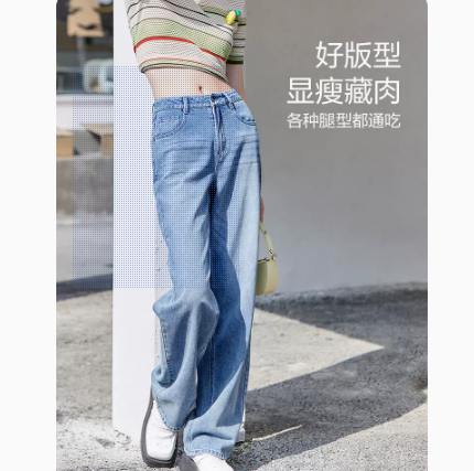 太平鸟阔腿直筒牛仔裤女早秋薄款2022新款柔软高腰宽松裤子阔腿裤
