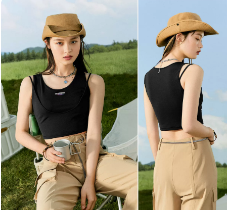 太平鸟飞跃联名假两件背心吊带女2022春夏新款运动内搭外穿上衣