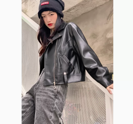 太平鸟机车皮衣女2022春季新款休闲皮夹克皮衣外套女