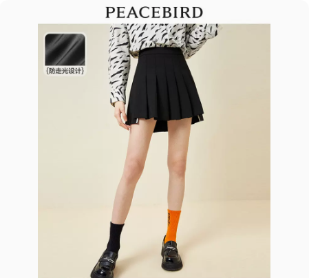 太平鸟百褶裙女黑色2022夏高腰半身裙显瘦学院风小黑裙a字短裙