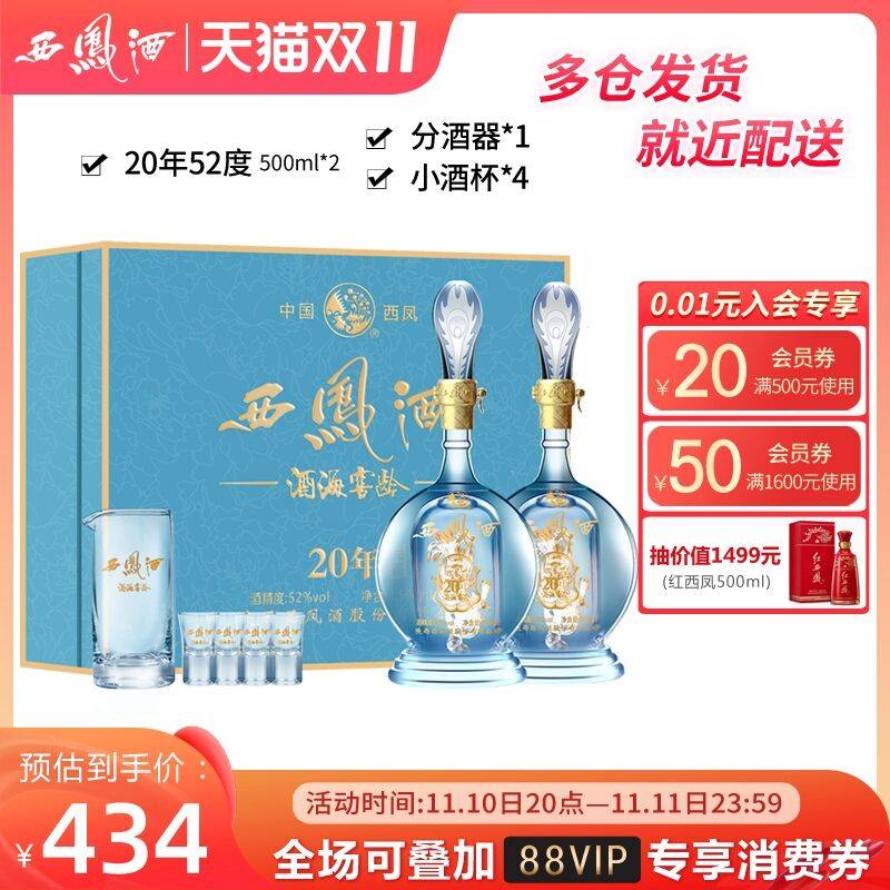 西凤酒52度酒海窖龄20年品鉴礼盒凤香型西风500ml*2瓶陕西白酒