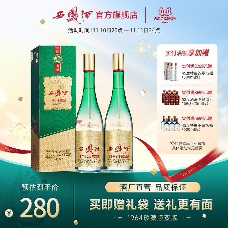 【罗永浩专享】西凤酒55度1964珍藏版双瓶 凤香型白酒 陕西送礼酒