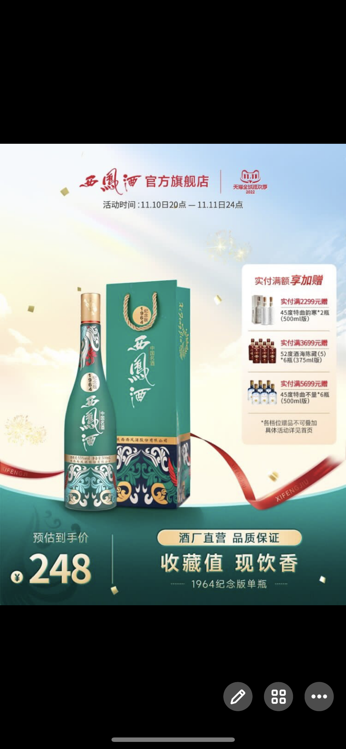 【酒厂直营】西凤酒55度1964纪念版国潮单瓶凤香型陕西白酒旗舰店