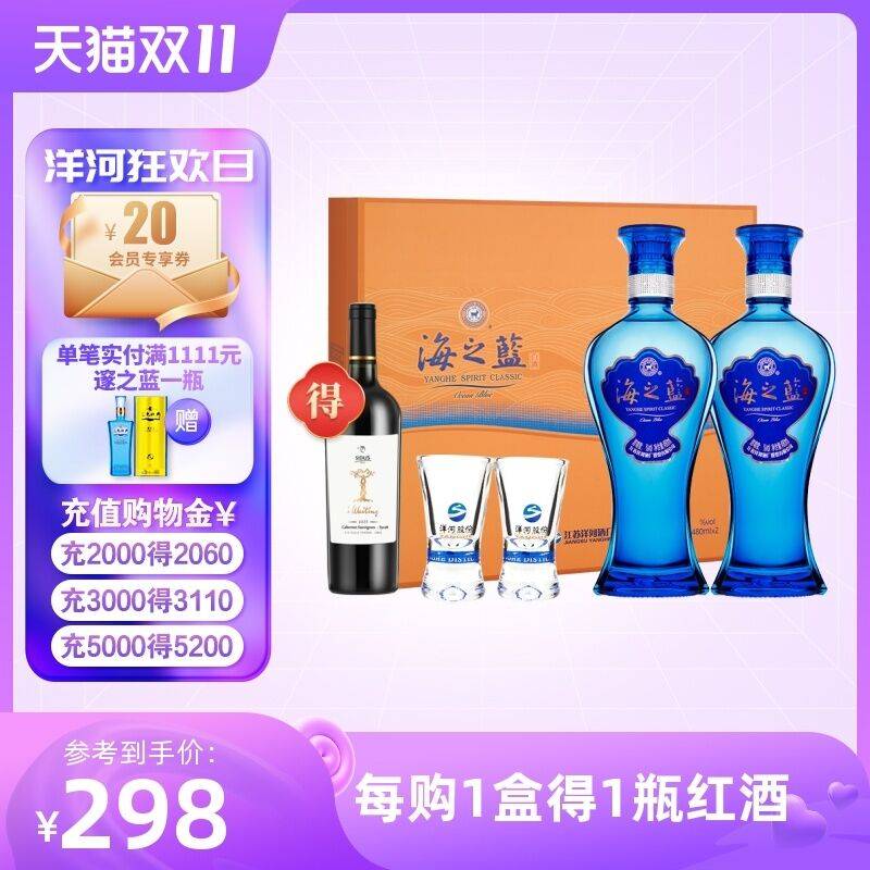 洋河海之蓝42度480mL*2瓶装礼盒版白酒 官方旗舰店