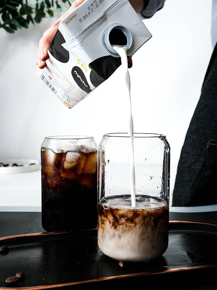 玻璃水杯咖啡牛奶杯奶茶杯易拉罐杯子ins风小清新家用宿舍用耐热
