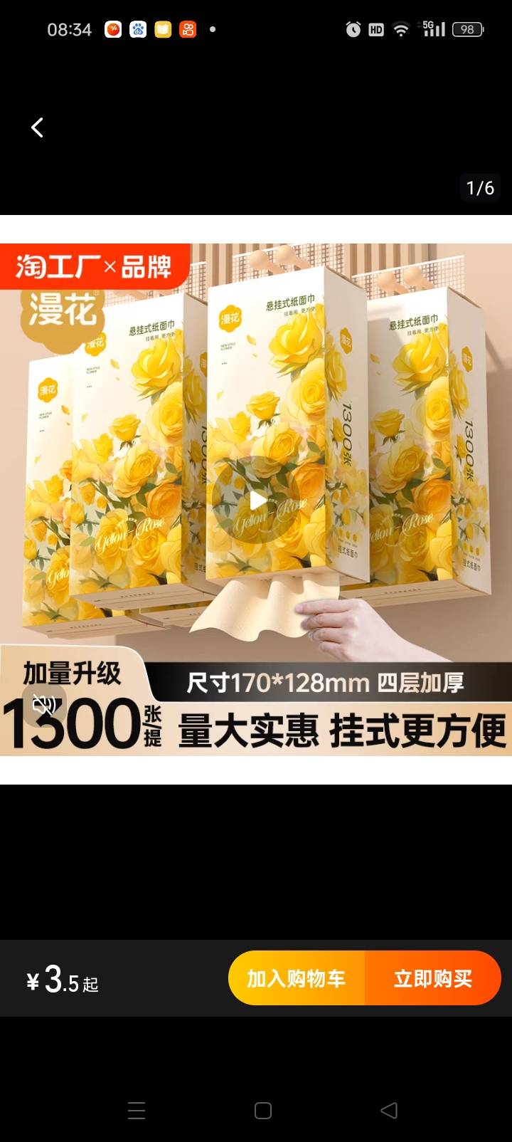 植护大包悬挂式抽纸整箱批餐巾纸家用实惠装厕纸婴儿擦手卫生纸巾 9.90 已售:0件