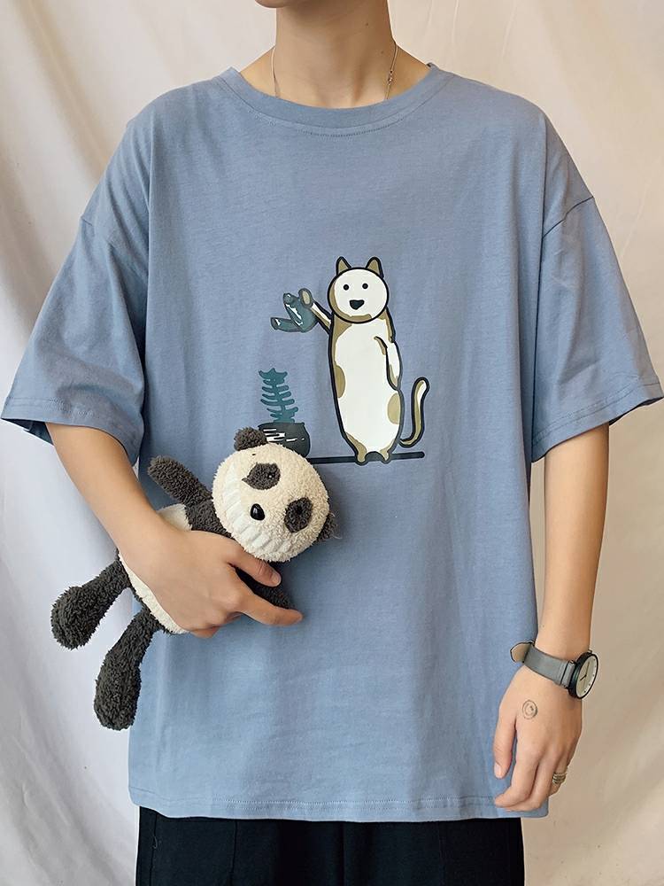 2020夏季男士纯棉短袖t恤港风ins宽松情侣潮流潮牌半袖小恐龙衣服