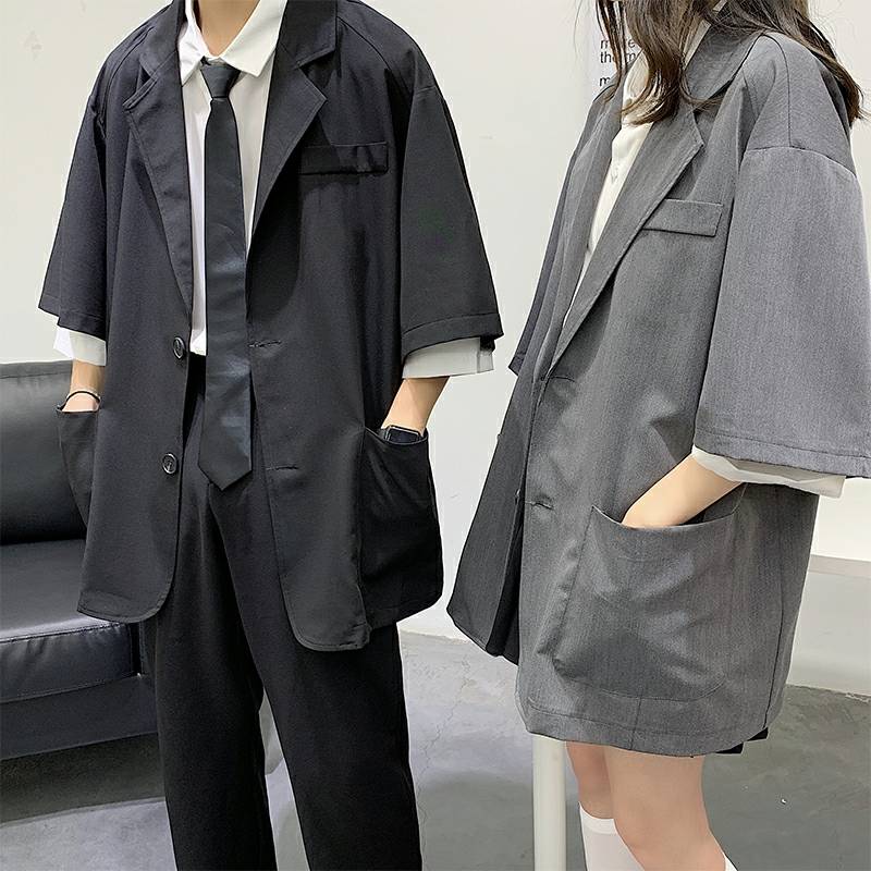 西服男潮流韩版宽松潮牌帅气百搭短袖外套ins港风夏季薄款小西装