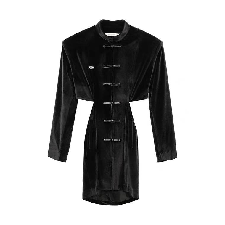 美伢FUZZYKON 原创设计 笃定的暗黑行者 中式盘扣金丝绒外套